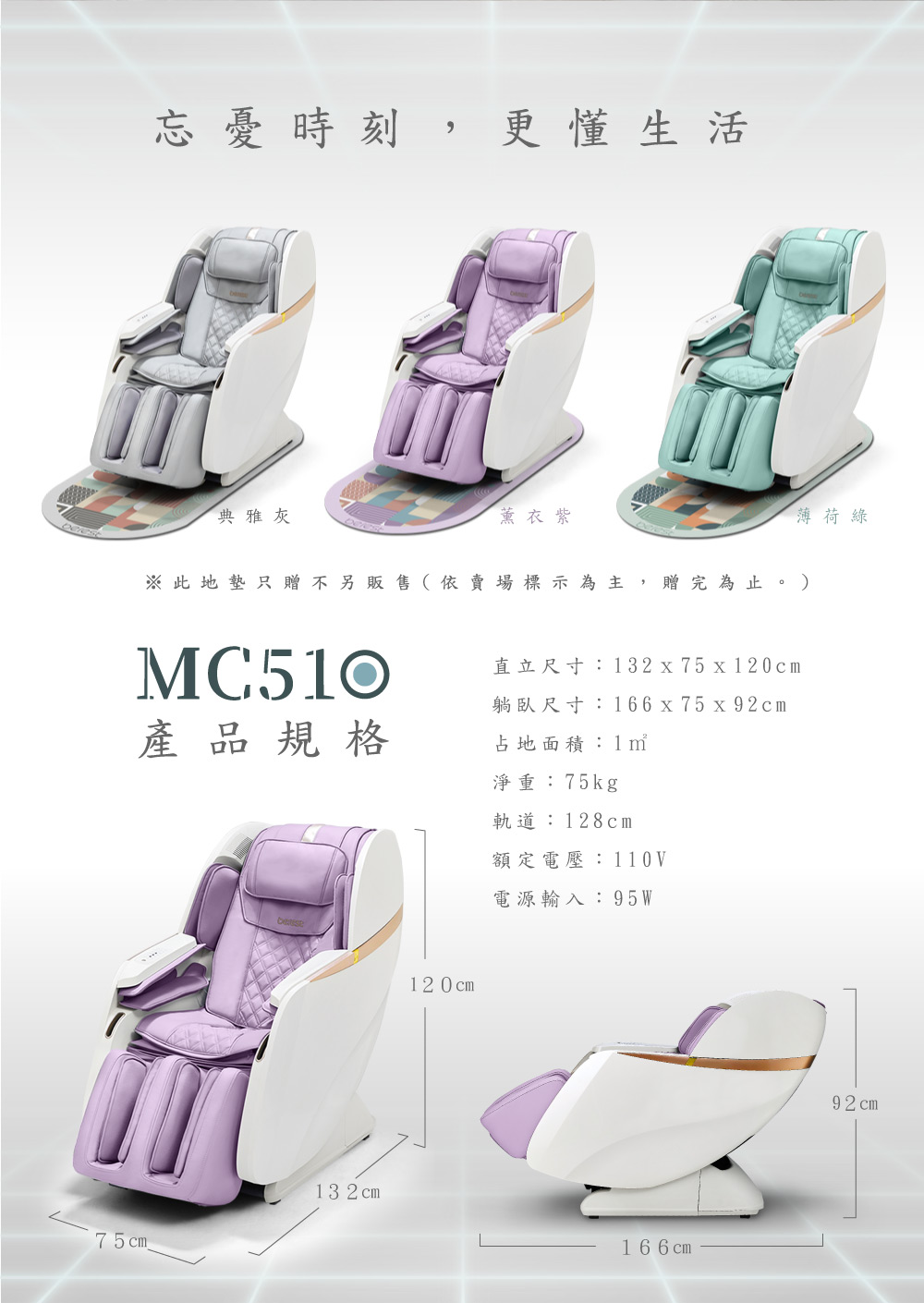按摩椅 > MC510 忘憂時刻智能音感按摩椅_薰衣紫