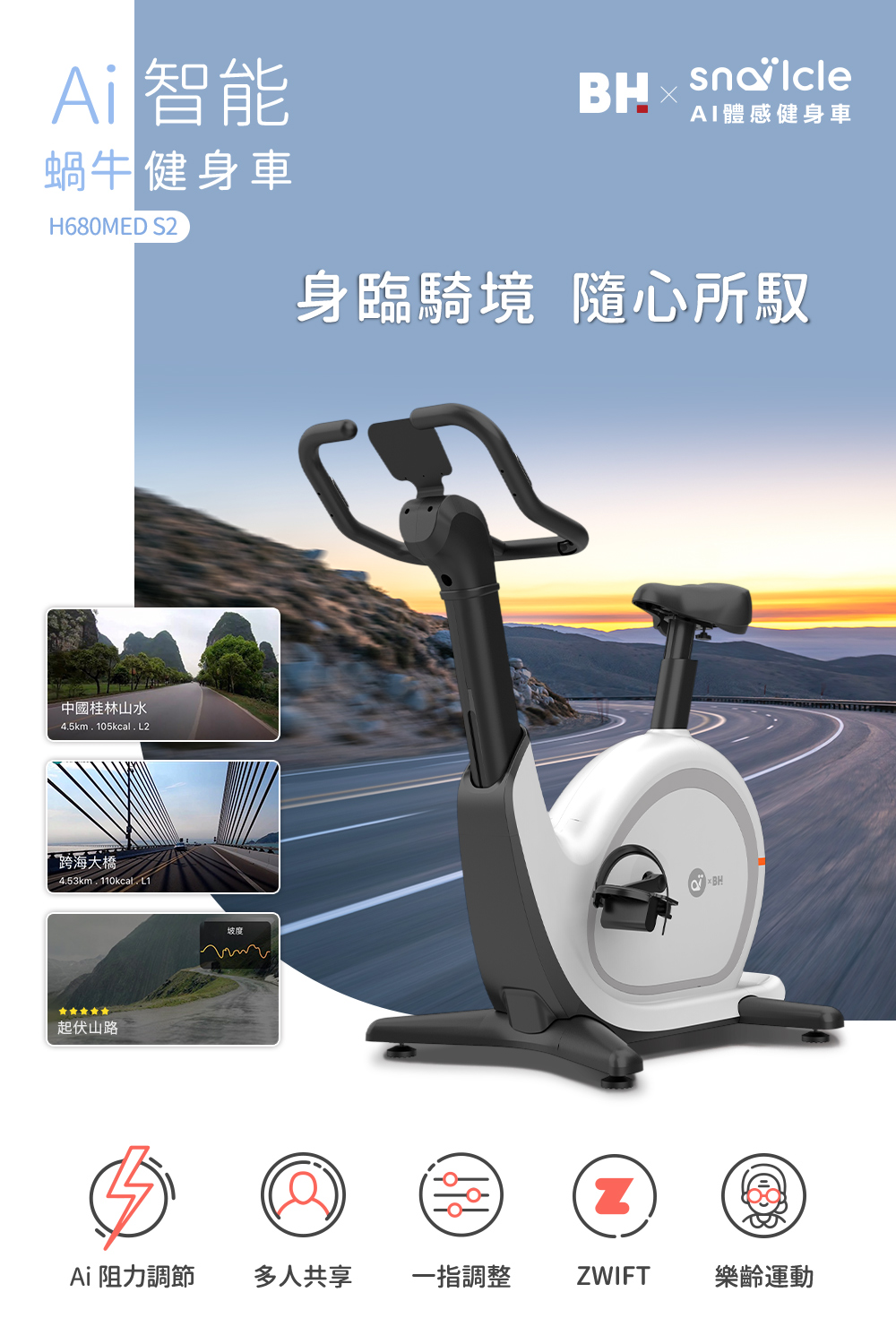健身車 > H680MED S2 AI智能蝸牛立式健身車
