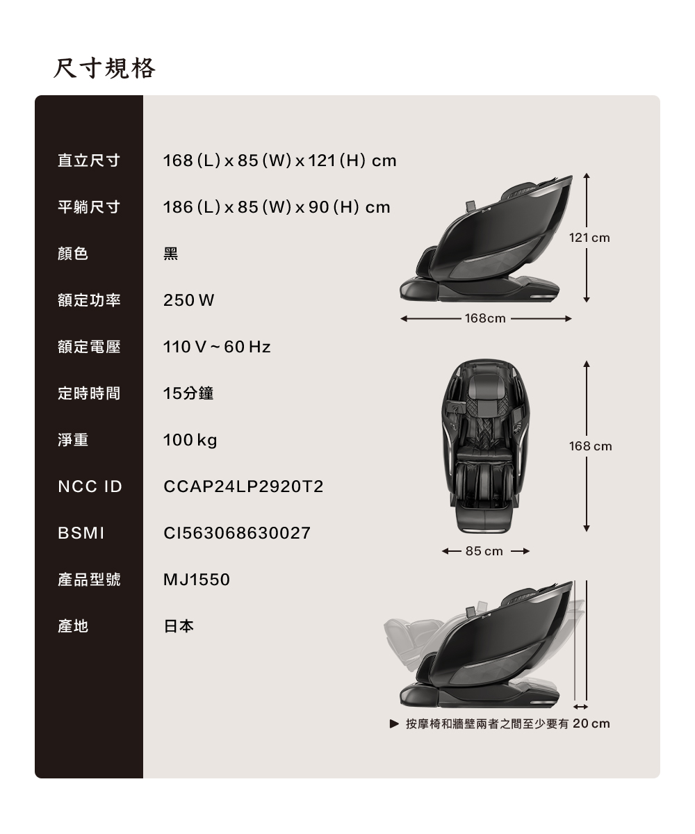 按摩椅 > MJ1550S 音波律動按摩椅(黑)
