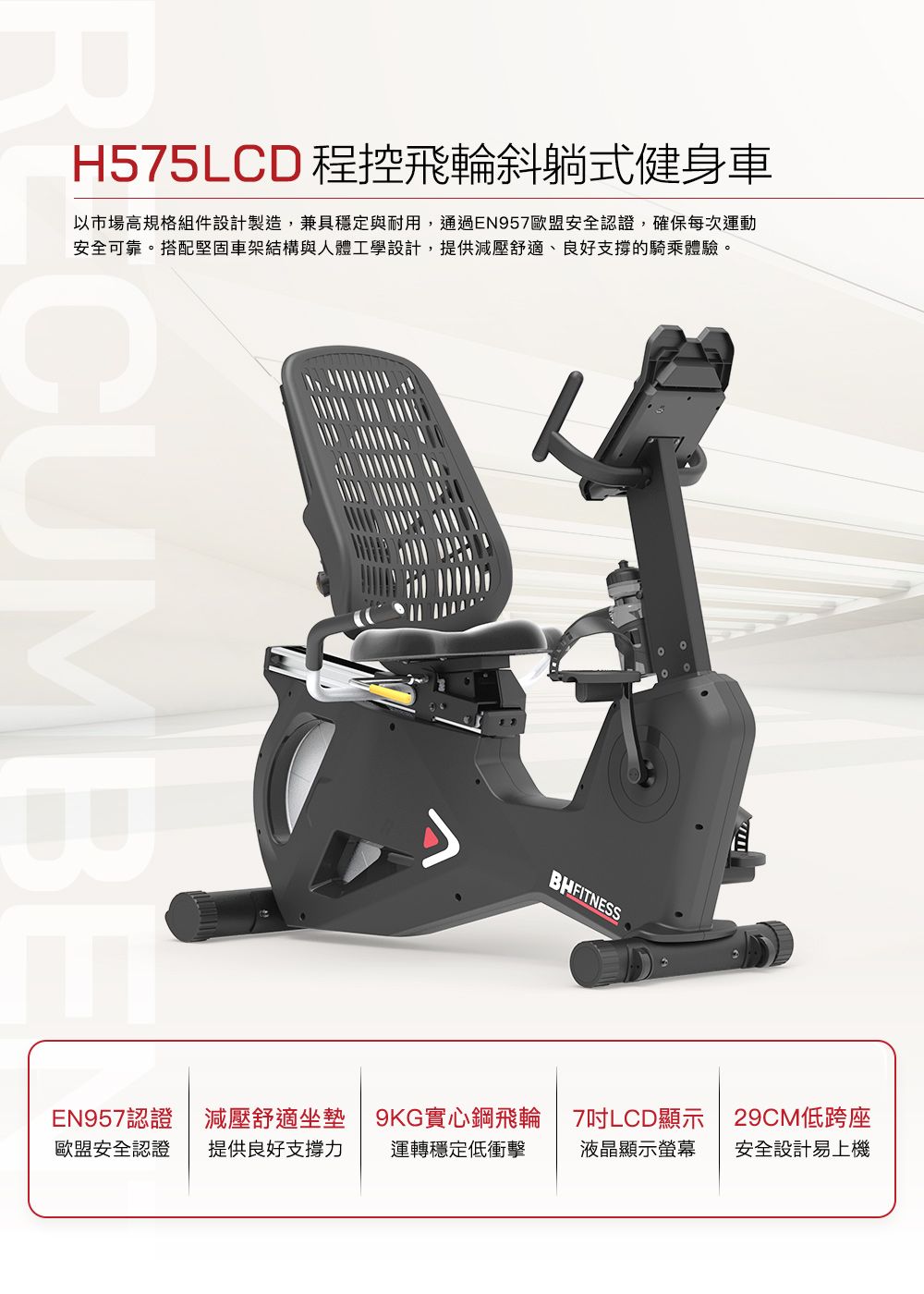 健身車 > H575LCD 程控飛輪斜躺式健身車