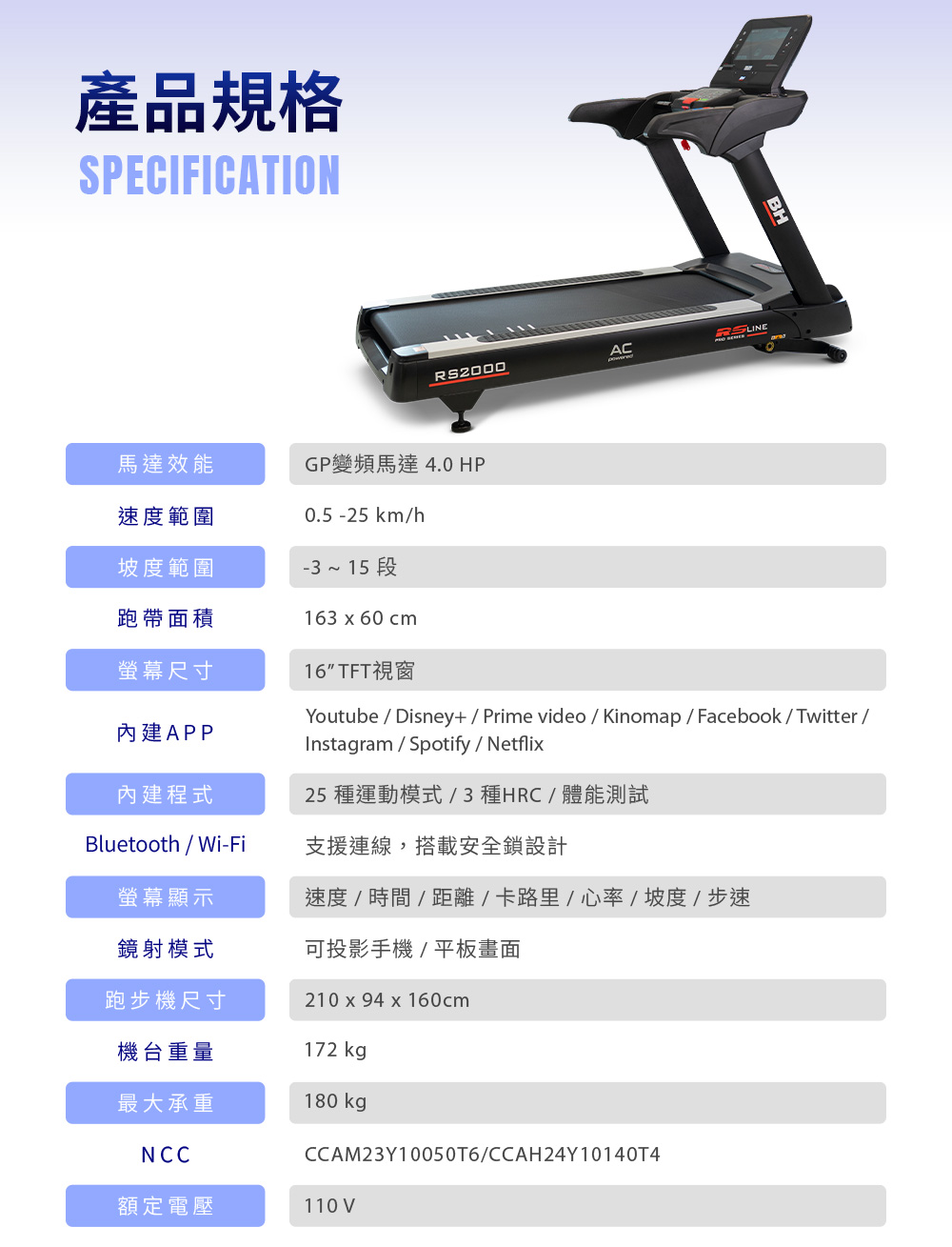 跑步機 > G6514TFT 商用 RS2000 TFT 智能變頻跑步機